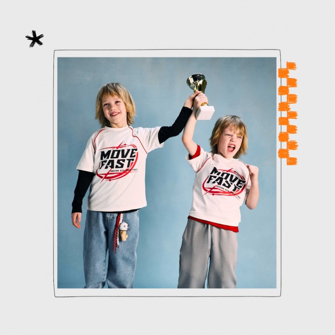 Для тех, кто играет на высокой скорости и привык побеждать! В новой спортивной коллекции для детей — яркие бомберы, свитшоты, объёмные джинсы и брюки со стопперами. Контрастные вставки, лампасы и принты добавляют динамики и создают баланс между уличным и спортивным стилем.